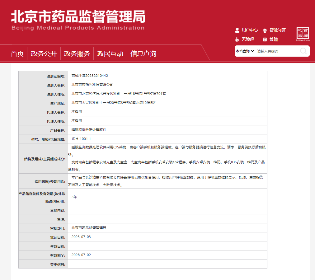 近日,奧咨達助力京東健康旗下北京京東拓先科技有限公司自主研發的皮膚圖像處理軟件和睡眠監測數據處理軟件成功獲批醫療器械注冊證,此次獲證代表著京東正式入局醫療器械領域,對于京東健康持續深耕醫療健康服務,加速數字醫療滲透融合,為患者提供精確診斷和個體化治療方面具有“里程碑式”的重大意義,標志著京東健康在數字療法領域邁出了堅實的一步。祝賀京東健康!